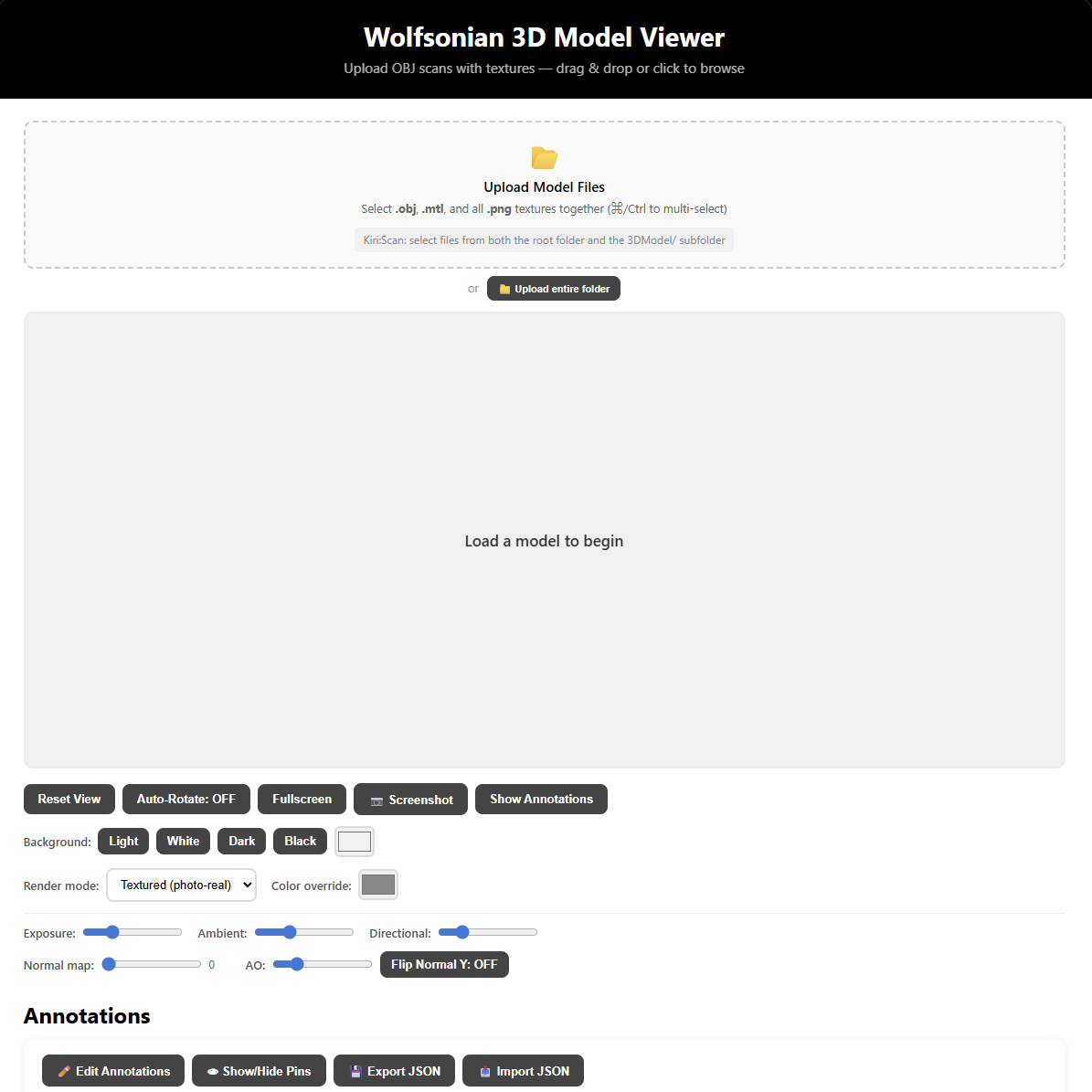 An experimental 3D viewer that lets you view and interact with 3D models, read annotations, take screen shots, and more.